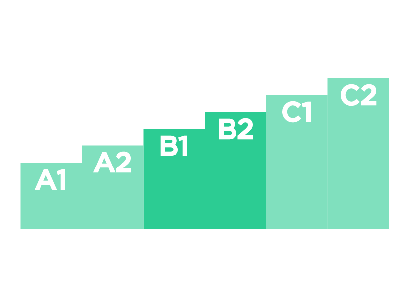 A1 Beginner, A2 Elementary, B1 Threshold, B2 Vantage, C1 Autonomy, C2 Mastery